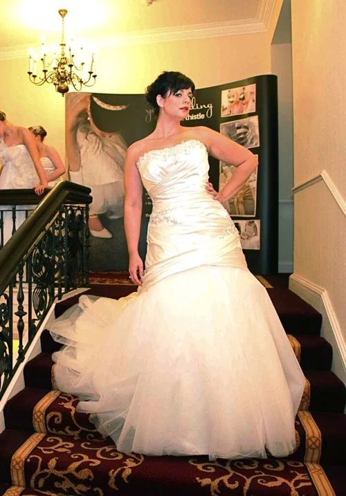 Wendy Coles Bridal Boutique sponsors this bridal fashion show, featuring Sue as a plus model.