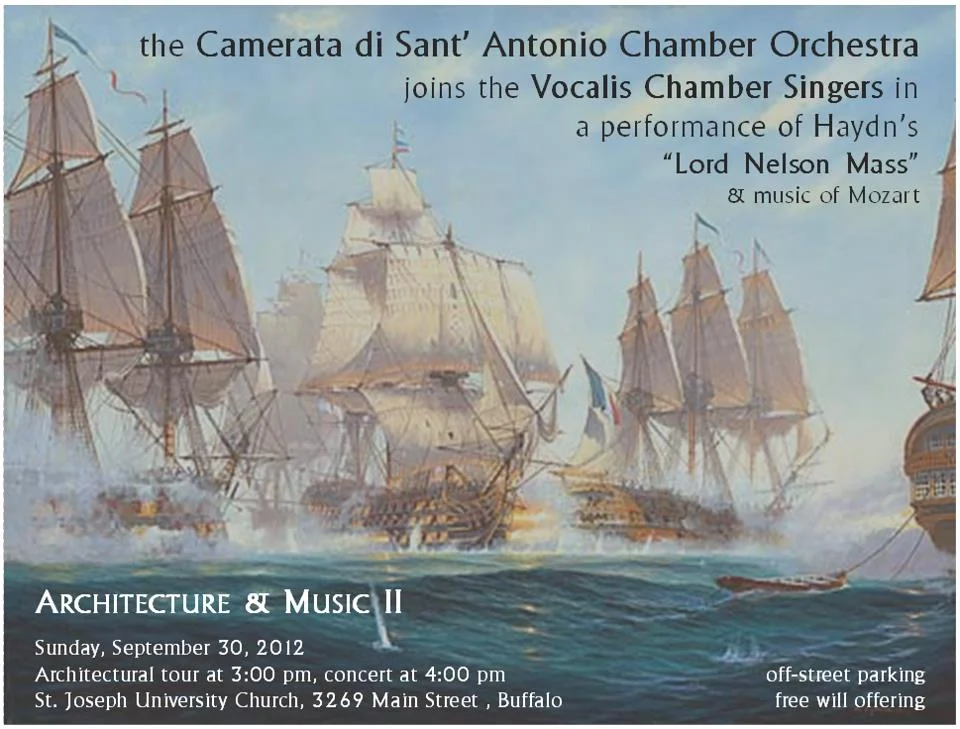 Architecture and Music IIVocalis Chamber Choir and soloists join the Camerata di Sant'Antonio in a free concert. Maestro Christopher Weber will lead the ensemble in performances of Haydn Missa in Angustiis (Nelson Mass) and Handel Zadok the Priest, along with orchestral music by Mozart.