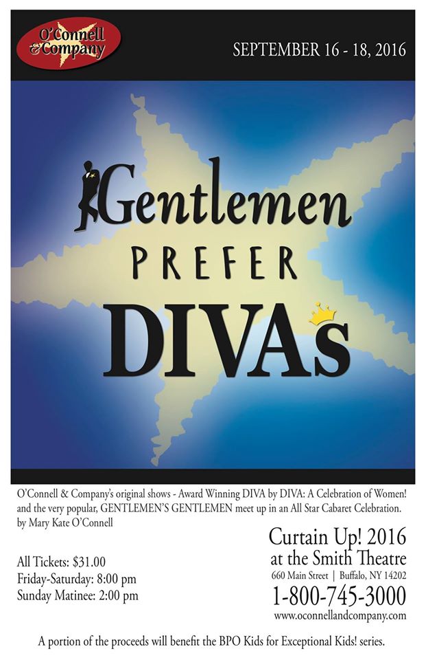 DIVA by DIVA A Celebration of Women (at 18 years, the longest-running show in WNY) is partnering their signature show with their male counterpart revue, GENTLEMEN'S GENTLEMEN. The show is a cabaret-style format celebrating the many images of men and women through quotes, stories, jokes and it is filled with wonderful music, great fun and a different mix of cast and material. This special engagement is a fundraiser for O'Connell & Company and a portion of the proceeds will benefit the BPO Kids for Exceptional Kids! series.