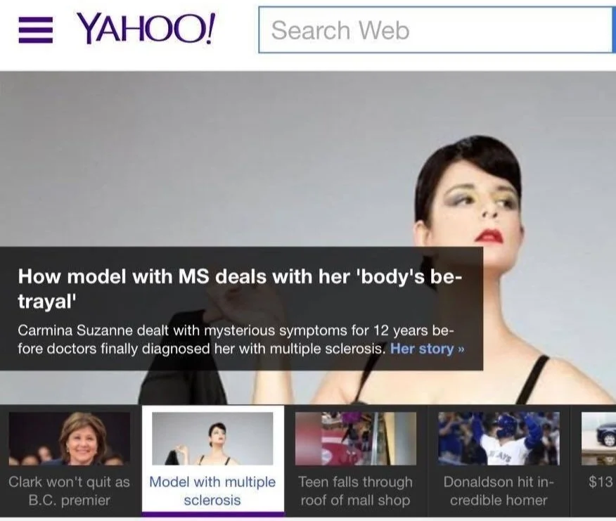 May 2017 ~ Please read my commissioned Open Letter by Yahoo Canada for World MS Day which was published on their homepage. From there it was picked up by Yahoo Style France and Yahoo News UK... which put it on the main international News and Style pages for ALL of Yahoo! You can read other Open Letters here.